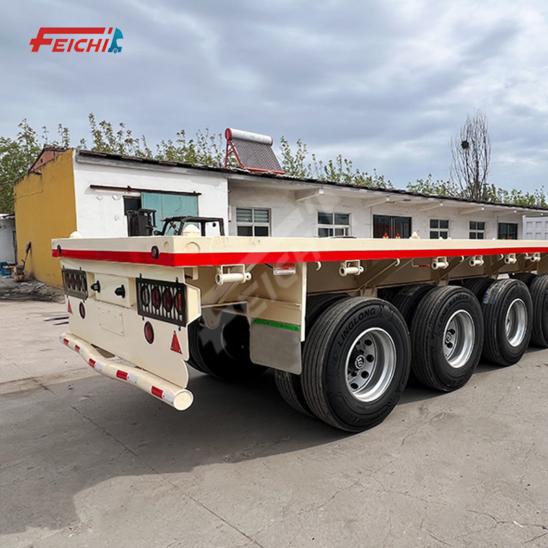 4-Axle Flatbed Semi-Trailer 12.5 M 60Tons Transport 20-Foot 40-Foot Container Flat Bed Semi Trailer