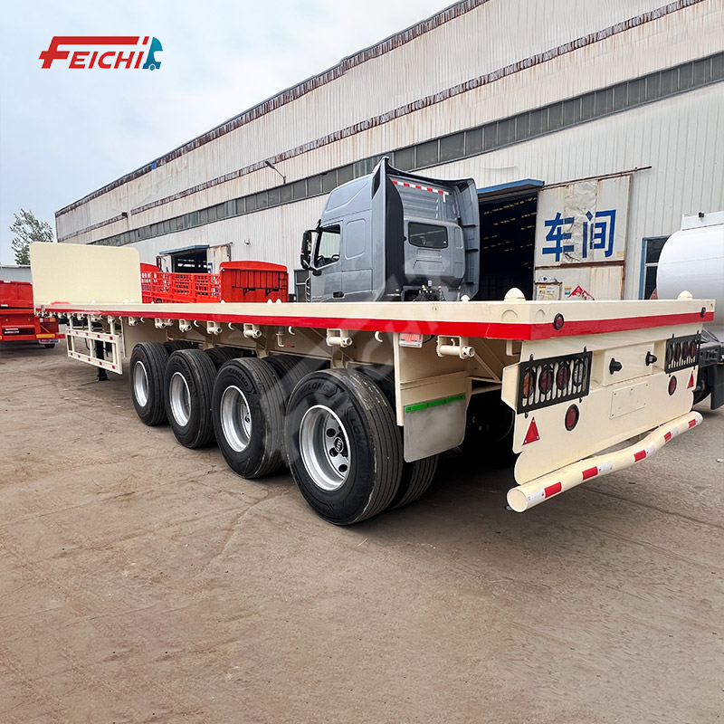 4-Axle Flatbed Semi-Trailer 12.5 M 60Tons Transport 20-Foot 40-Foot Container Flat Bed Semi Trailer